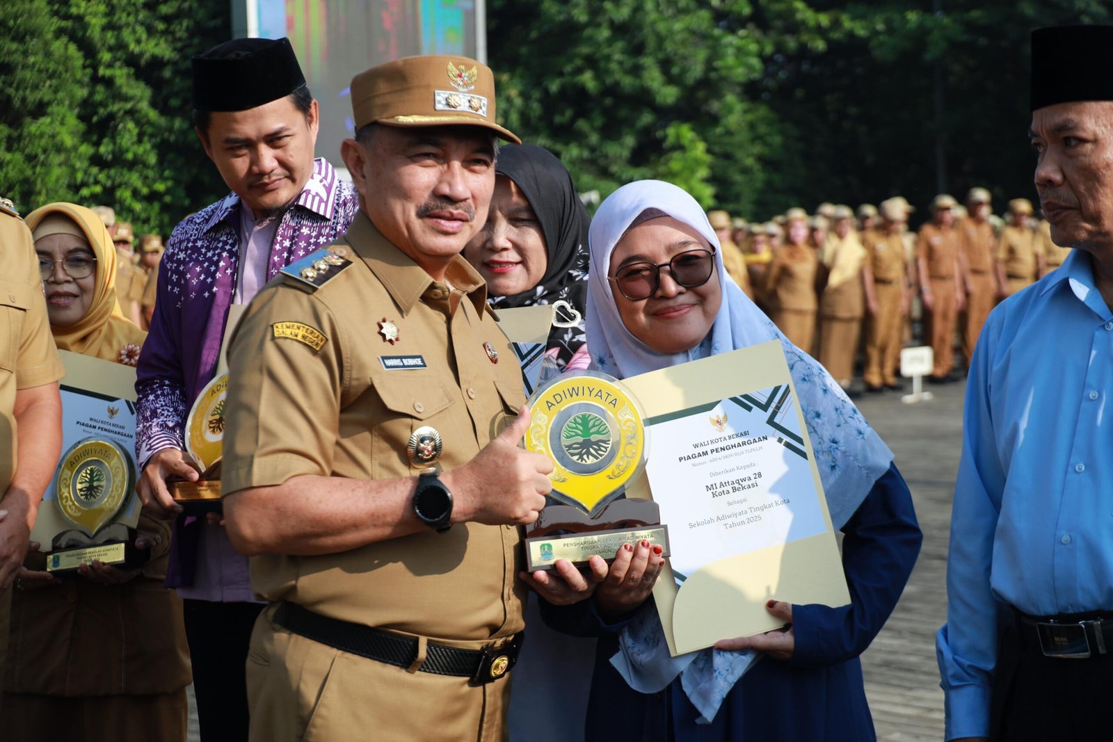 RILISINFO.COM, Kota Bekasi – Pemerintah Kota Bekasi melalui Dinas Lingkungan Hidup memberikan Penghargaan Sekolah Adiwiyata Tingkat Kota Bekasi Tahun 2025. Penghargaan diserahkan langsung oleh Wali Kota Bekasi, Tri Adhianto Tjahyono, pada saat apel di Plaza Kantor Wali Kota Bekasi, Senin (22/09).