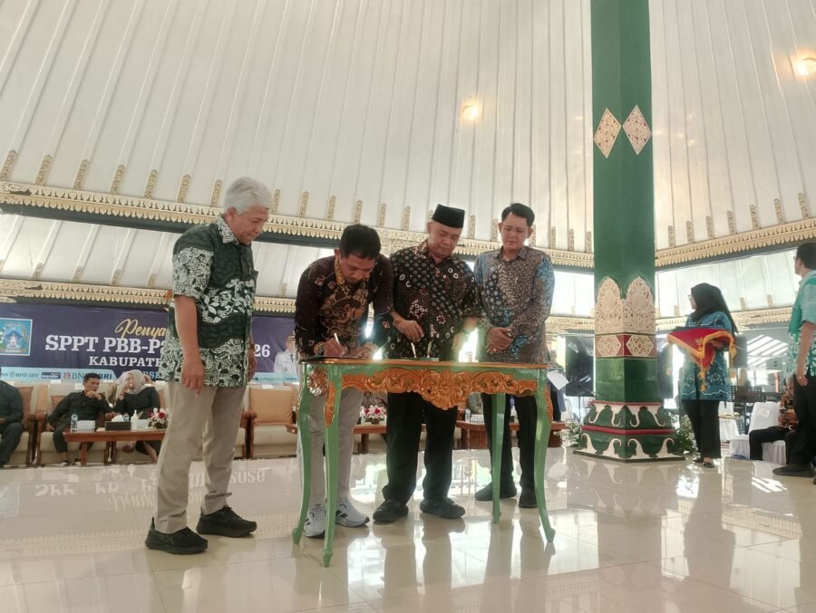 RILISINFO.COM, Sleman – Pemerintah Kabupaten Sleman melalui Badan Keuangan dan Aset Daerah (BKAD) secara simbolis menyampaikan Surat Pemberitahuan Pajak Terutang (SPPT) PBB-P2 Tahun 2025 pada Senin (29/12/2025).