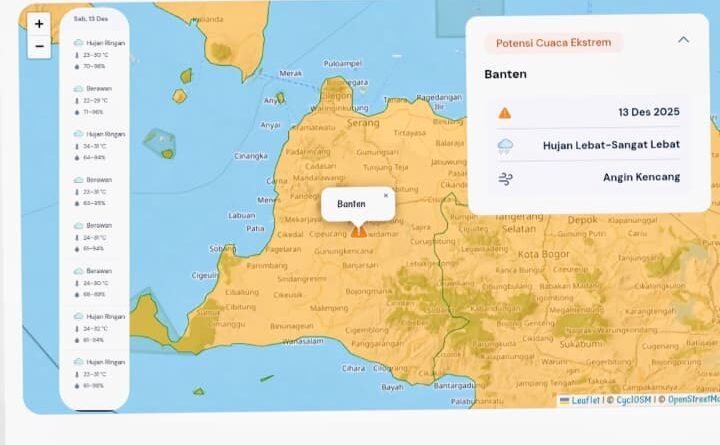 RILISINFO.COM, Serang – Polda Banten mengimbau masyarakat untuk meningkatkan kewaspadaan terhadap potensi cuaca ekstrem di sejumlah wilayah Provinsi Banten berdasarkan prakiraan cuaca Badan Meteorologi, Klimatologi, dan Geofisika (BMKG) Banten hari ini, Sabtu (13/12).