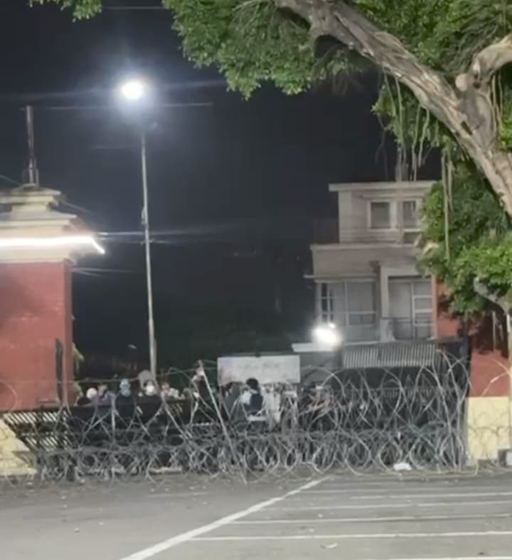 Sementara itu, aparat kepolisian terlihat telah melakukan langkah antisipasi. Sejak siang, petugas memasang pagar kawat berduri di dalam halaman untuk memperkuat pengamanan.