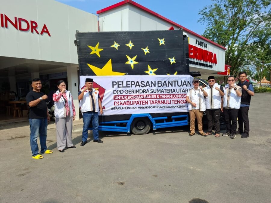 RILISINFO.COM, Medan – DPD Partai Gerindra Sumatera Utara (Sumut) bersama Yayasan Hati Emas Indonesia mengirimkan bantuan sembako untuk korban bencana di wilayah Tapanuli Tengah (Tapteng).