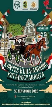 RILISINFO.COM, Jogja – Pemerintah Kota Yogyakarta melalui Dinas Pertanian dan Pangan (DPP) akan menggelar Kontes Kuda Andong pada Sabtu (29/11/2025) sebagai langkah menjaga citra andong sebagai transportasi tradisional sekaligus ikon wisata budaya.