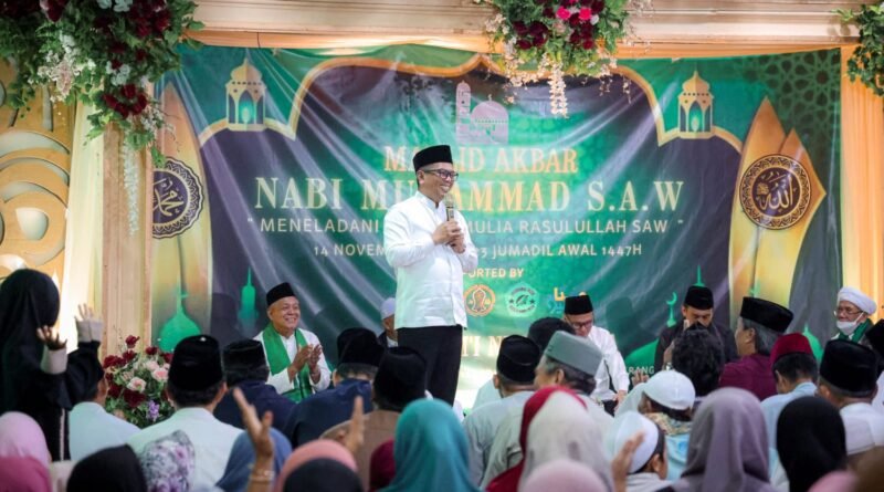 RILISINFO.COM, Lebak – Gubernur Banten Andra Soni menghadiri peringatan Maulid Nabi Muhammad di Masjid Nurul Huda, Kelurahan Larangan, Kecamatan Ciledug, Kota Tangerang, pada Jumat (14/11/2025) malam. Gubernur menyampaikan apresiasi atas undangan tersebut termasuk menyampaikan beberapa program pembangunan kepada masyarakat.