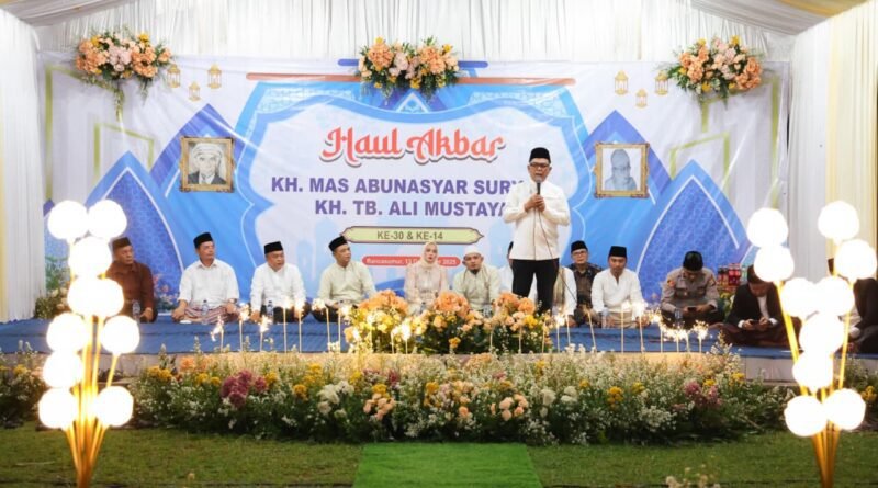 Dalam sambutannya, Andra Soni menegaskan bahwa peringatan haul tidak boleh sekadar dimaknai sebagai tradisi tahunan semata. Lebih dari itu, haul merupakan momentum krusial untuk meneladani kembali peran ulama dalam membimbing kehidupan bermasyarakat.