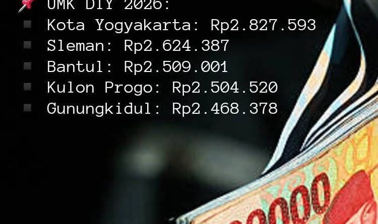 RILISINFO.COM, Jogja – Jumlah besaran Upah Minimum Kabupaten/Kota (UMK) Yogyakarta tahun 2026 akhirnya terjawab.