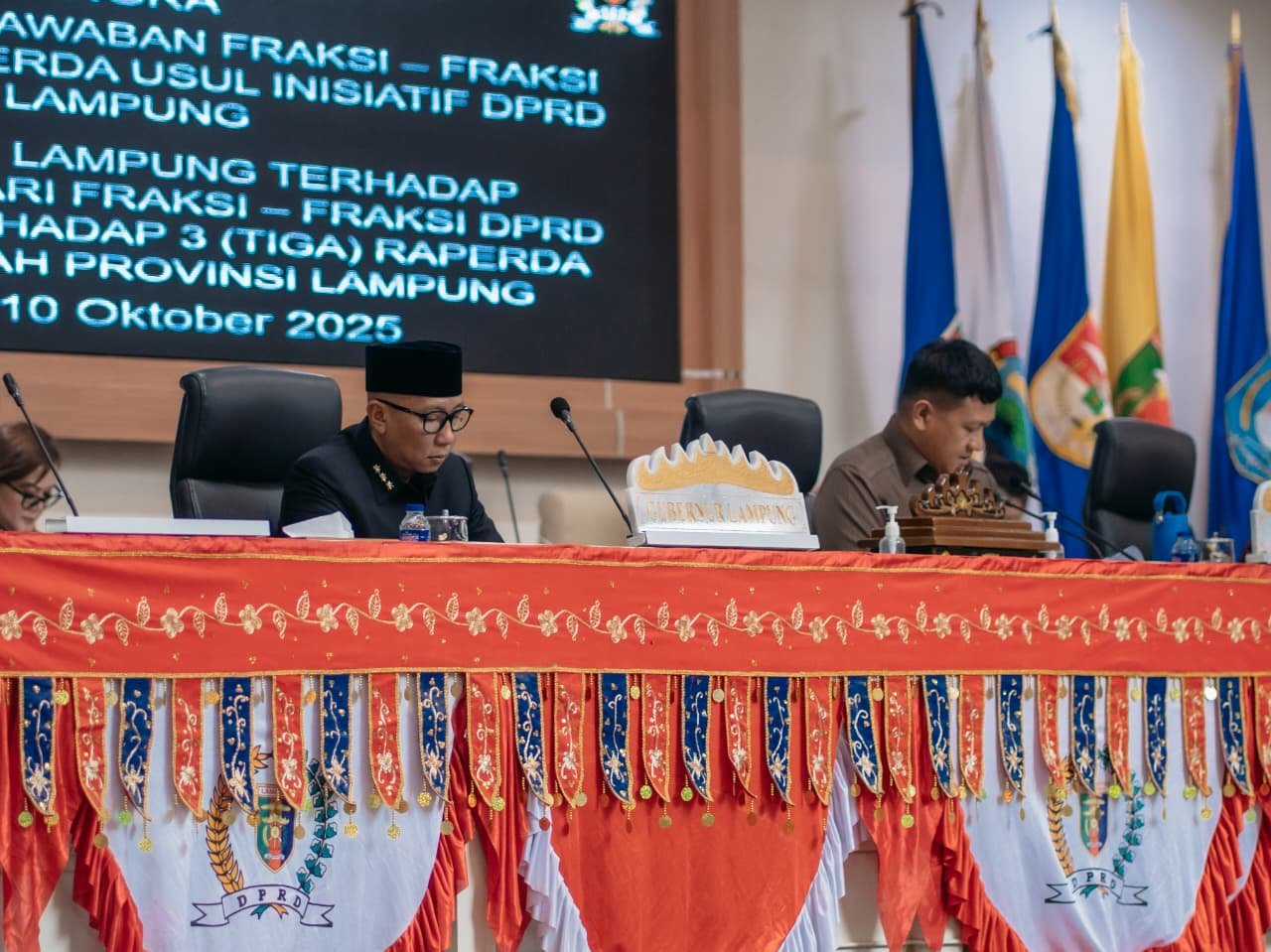“Kami menyampaikan apresiasi atas pandangan fraksi-fraksi DPRD yang telah memberikan masukan konstruktif terhadap tiga Raperda ini. Semua saran tersebut akan menjadi bahan penyempurnaan agar produk hukum yang dihasilkan dapat benar-benar memberi manfaat bagi masyarakat Lampung,” ujar Gubernur.