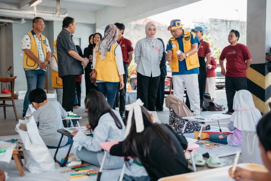Pada kesempatna itu pula, Wakil Gubernur Jihan tampak berkeliling berbincang dengan anak-anak peserta kegiatan. Ia menyapa beberapa anak sambil mengamati hasil karya seni yang tengah dibuat.