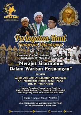 RILISINFO.COM, Jogja – Paguyuban Trah Pangeran Diponegoro (Patra Padi) menggelar Peringatan Haul Bendoro Pangeran Haryo (BPH) Diponegoro ke-171 tahun di nDalem Tegalrejo, Monumen Diponegoro, Yogyakarta, Kamis Kliwon (8/1/2026).