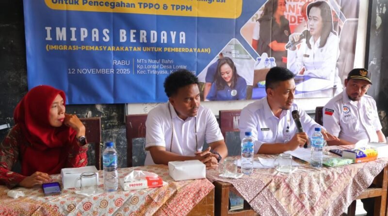 RILISINFO.COM, Serang, 12 November 2025 – Kantor Wilayah Direktorat Jenderal Imigrasi Banten melaksanakan kegiatan Sosialisasi Desa Binaan Imigrasi dengan tema “Pencegahan Tindak Pidana Perdagangan Orang (TPPO) dan Tindak Pidana Penyelundupan Manusia (TPPM)”, bertempat di MTs Nurul Bahri, Desa Lontar, Kecamatan Tirtayasa, Kabupaten Serang. Kegiatan ini merupakan bagian dari implementasi program Desa Binaan Imigrasi yang digagas untuk meningkatkan kesadaran masyarakat terhadap bahaya kejahatan lintas negara, khususnya di wilayah pedesaan.
