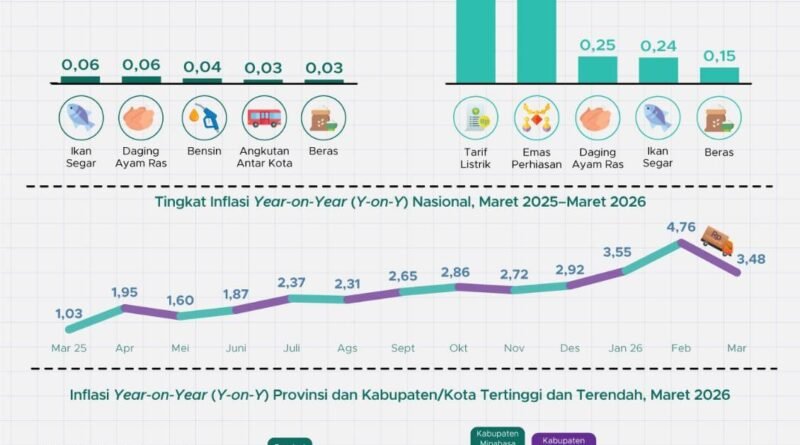 Secara nasional, angka ini menandai tren penurunan dibandingkan Februari 2026 yang sempat mencapai 4,76 persen. Kondisi tersebut mencerminkan mulai stabilnya harga-harga setelah mengalami tekanan pada awal tahun.