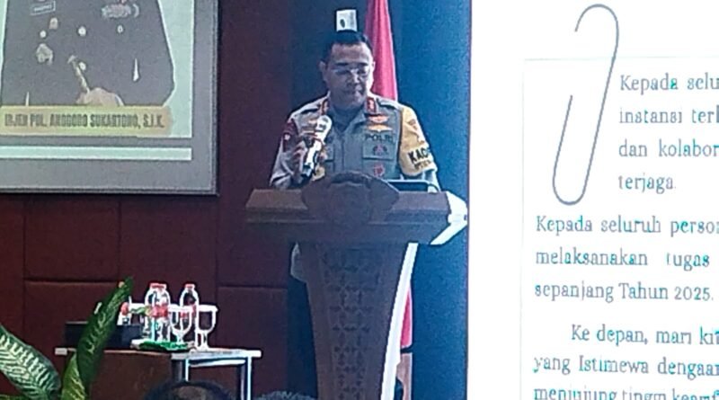 RILISINFO.COM, Jogja – Menutup akhir tahun 2025, Kepala Kepolisian Daerah Istimewa Yogyakarta (Kapolda DIY) Irjen Pol. Anggoro Sukartono, S.I.K., M.H., menyampaikan apresiasi sekaligus evaluasi kinerja jajaran kepolisian kepada masyarakat.