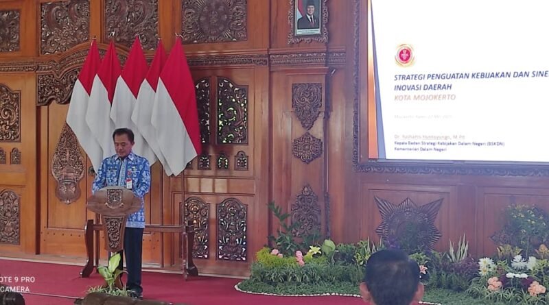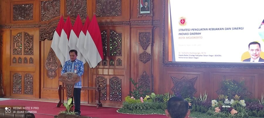 RILISINFO.COM, Mojokerto – Kepala Badan Strategi Kebijakan Dalam Negeri (BSKDN) Kementerian Dalam Negeri (Kemendagri) Yusharto Huntoyungo mengapresiasi Pemerintah Kota (Pemkot) Mojokerto atas komitmen dan konsistensinya dalam mendorong budaya inovasi. Hal ini disampaikannya dalam kegiatan Penghargaan Lomba Mojo Indah 2025 dan Evaluasi Indeks Inovasi Daerah (IID) 2024 di Pendopo Sabha Kridatama Rumah Rakyat Kota Mojokerto, Kamis (22/5/2025).