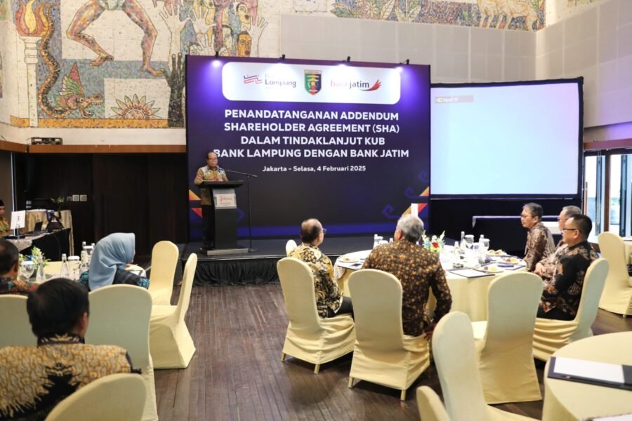 RILISINFO.COM, JAKARTA — Demi meningkatkan daya saing dan kinerja Bank Lampung, Pemerintah Provinsi Lampung melakukan Penandatanganan Addendum Shareholder Agreement (SHA) sebagai tindak lanjut Kelompok Usaha Bank (KUB) Bank Lampung dengan Bank Jatim.