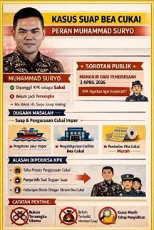 ‎Muhammad Suryo dijadwalkan diperiksa pada Kamis, 2 April 2026, namun tidak hadir tanpa keterangan. KPK menilai kehadiran saksi sangat krusial untuk membongkar perkara ini.