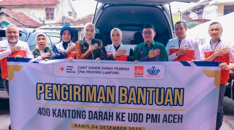 RILISINFO.COM, Bandar Lampung — Palang Merah Indonesia (PMI) Provinsi Lampung mengirim bantuan kemanusiaan untuk korban bencana alam di Aceh serta daerah terdampak lainnya seperti Sumatera Utara dan Sumatera Barat. Bantuan berupa 400 kantong darah dan berbagai logistik pendukung dilepas langsung oleh Ketua PMI Provinsi Lampung, Purnama Wulan Sari, di UDD PMI Lampung, Kamis (04/12/2025).