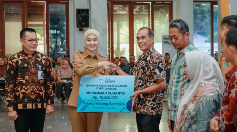 RILISINFO.COM, Bandar Lampung — Wakil Gubernur Lampung Jihan Nurlela mengikuti pelaksanaan Akad Massal Kredit Usaha Rakyat (KUR) bagi 800.000 pelaku Usaha Mikro, Kecil, dan Menengah (UMKM) yang digelar serentak di 38 provinsi seluruh Indonesia melalui virtual meeting bersama Presiden Republik Indonesia Prabowo Subianto, di Aula Mahan Agung, Bandarlampung, Selasa (21/10/2025).