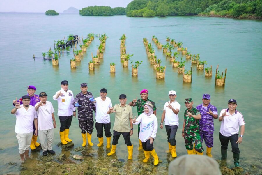 RILISINFO.COM, Pesawaran – Gubernur Lampung Rahmat Mirzani Djausal melakukan aksi simbolis penanaman 2.000 batang mangrove dan pemasangan inovasi Appostrap, di PT. Indokom Samudera Persada, Desa Gebang, Kecamatan Teluk Pandan, Pesawaran, Kamis (8/5/2025).