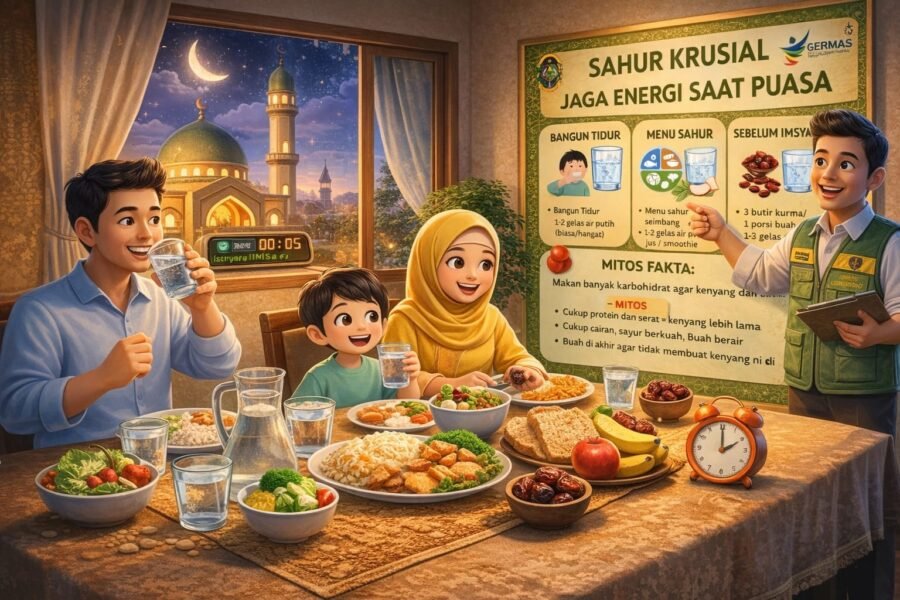 RILISINFO.COM, YOGYAKARTA – Dinas Kesehatan Kota Yogyakarta menegaskan pentingnya sahur sebagai penentu kondisi tubuh selama menjalankan ibadah puasa. Melalui infografis edukasi yang dirilis pekan ini, Dinkes menyebut waktu sahur sebagai momen krusial untuk menjaga energi dan mencegah dehidrasi.