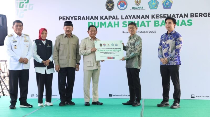 RILISINFO.COM, Manado – Menteri Dalam Negeri (Mendagri) Muhammad Tito Karnavian selaku Kepala Badan Nasional Pengelola Perbatasan (BNPP) menyaksikan penyerahan bantuan dua unit kapal layanan kesehatan bergerak Rumah Sehat Badan Amil Zakat Nasional (Baznas) kepada Pemerintah Kabupaten (Pemkab) Kepulauan Talaud dan Pemkab Kepulauan Sangihe. Penyerahan tersebut dilakukan secara simbolis oleh Ketua Baznas RI Noor Achmad bersama Mendagri kepada Bupati Kepulauan Talaud Welly Titah dan Bupati Kepulauan Sangihe Michael Thungari di Dermaga Bay, Kota Manado, Sulawesi Utara (Sulut), Kamis (23/10/2025).