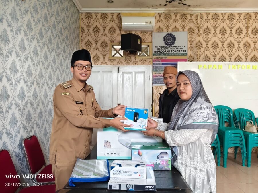 RILISINFO.COM, SINDANGHEULA – Pemerintah Desa Sindangheula, Kecamatan Pabuaran, Kabupaten Serang, menyalurkan bantuan alat kesehatan (alkes) kepada kader Posyandu yang ada di wilayah Desa Sindangheula. Kegiatan penyaluran tersebut dilaksanakan pada Selasa (30/12/2025).