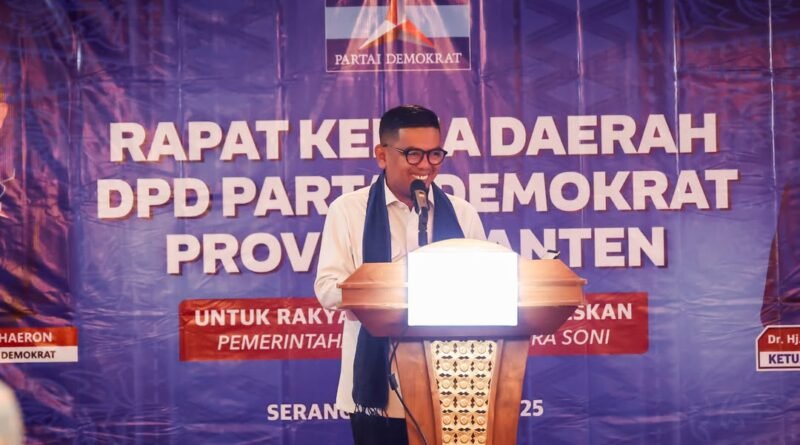 RILISINFO.COM, Lebak – Gubernur Banten Andra Soni menghadiri undangan pembukaan Rapat Kerja Daerah (Rakerda) DPD Partai Demokrat di Ledian Hotel, Kota Serang, Minggu (5/10/2025). Di sana, gubernur berbicara mengenai pentingnya sinergi seluruh pihak dalam mewujudkan pembangunan daerah yang saat ini dilakukan Pemerintah Provinsi (Pemprov) Banten.