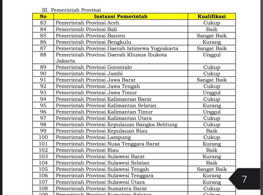Dalam keputusan Kepala LAN, Pemprov Banten juga tercatat sebagai salah satu pemerintah provinsi yang memperoleh kualifikasi Sangat Baik. Capaian berdasarkan LAN telah mencerminkan komitmen Pemprov Banten dalam memperkuat tata kelola pemerintahan melalui kebijakan yang berbasis analisis, data, serta kebutuhan masyarakat.