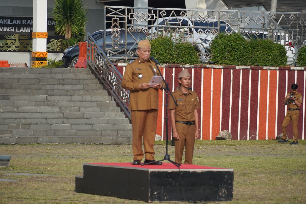 RILISINFO.COM, Bandar Lampung – Gubernur Lampung diwakili Staf Ahli Bidang Kemasyarakatan dan SDM, Lukman Pura memimpin Apel Mingguan di lingkungan Pemerintah Provinsi Lampung, bertempat di Lapangan Korpri Kantor Gubernur, Senin (20/10/2025).