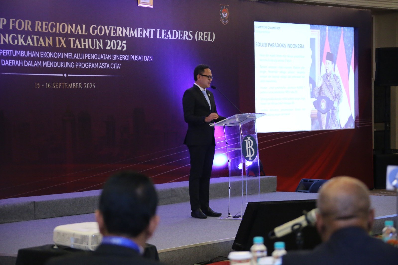 “[Pasalnya] target-target besar kita tadi memerlukan stabilitas politik di daerah dan kepala daerah itu harus hands on, harus betul-betul in control untuk stabilitas politik di daerah,” tandas Bima.