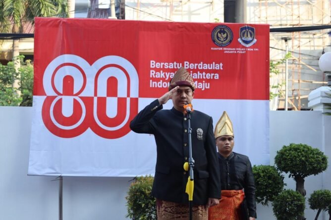 RILISINFO.COM, Jakarta, 17 Agustus – Dalam rangka memperingati Hari Ulang Tahun ke-80 Kemerdekaan Republik Indonesia yang bertemakan “Bersatu, Berdaulat, Rakyat Sejahtera, Indonesia Maju” Kantor Imigrasi Kelas I Non TPI Jakarta Pusat menyelenggarakan serangkaian kegiatan yang penuh makna. Peringatan ini tidak hanya menjadi momentum mengenang jasa para pahlawan, tetapi sebagai wujud komitmen jajaran Imigrasi dalam menjaga semangat nasionalisme dan meningkatkan kualitas pelayanan publik.