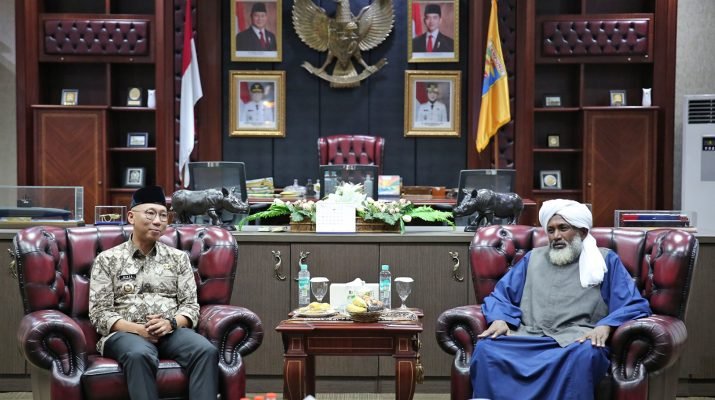 RILISINFO.COM, Bandar Lampung – Gubernur Lampung Rahmat Mirzani Djausal menerima kunjungan ulama besar negara Sudan Syaikh Awad Karim Utsman Al-Aqli dalam rangka menyambung hubungan silaturahmi dan keilmuan (silatul ilmi), di Ruang Kerja Gubernur, Bandarlampung, Kamis (15/5/2025).