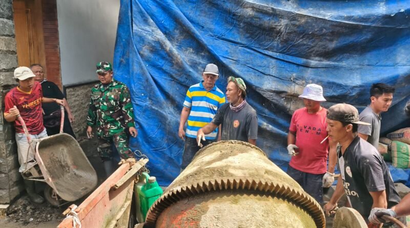 “Kalau hati sudah senang, pekerjaan berat pun akan terasa ringan,” tegasnya menyemangati anggota dan warga yang ikut mencampur adonan hingga meratakan beton.
