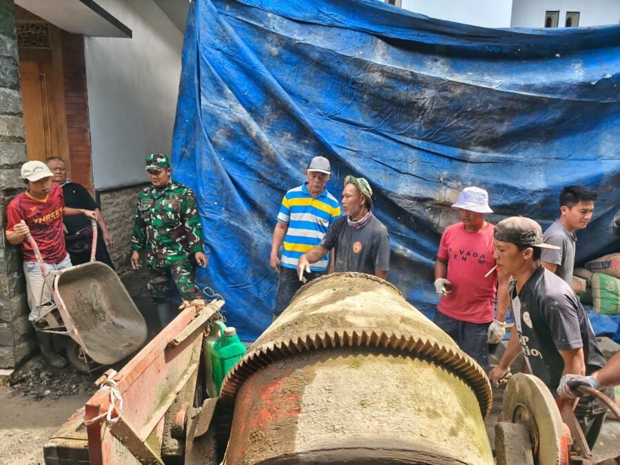 “Kalau hati sudah senang, pekerjaan berat pun akan terasa ringan,” tegasnya menyemangati anggota dan warga yang ikut mencampur adonan hingga meratakan beton.