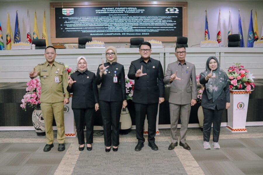 Apresiasi itu disampaikan Wagub Jihan saat Rapat Paripurna Penetapan Persetujuan atas enam Raperda Usul Inisiatif DPRD dan dua Raperda Prakarsa Pemerintah Provinsi Lampung di Ruang Sidang DPRD Provinsi Lampung, Senin (29/12/2025).
