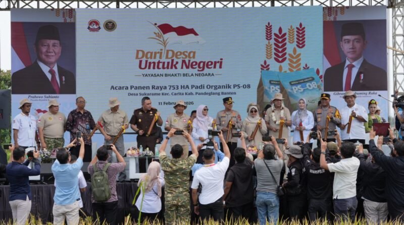 RILISINFO.COM, Pandeglang – Dalam rangka mendukung terwujudnya Indonesia swasembada pangan, Yayasan Bhakti Bela Negara menggelar Panen Raya Padi seluas 753 hektar di Desa Sukarame, Kecamatan Carita, Rabu (11/2/2026).